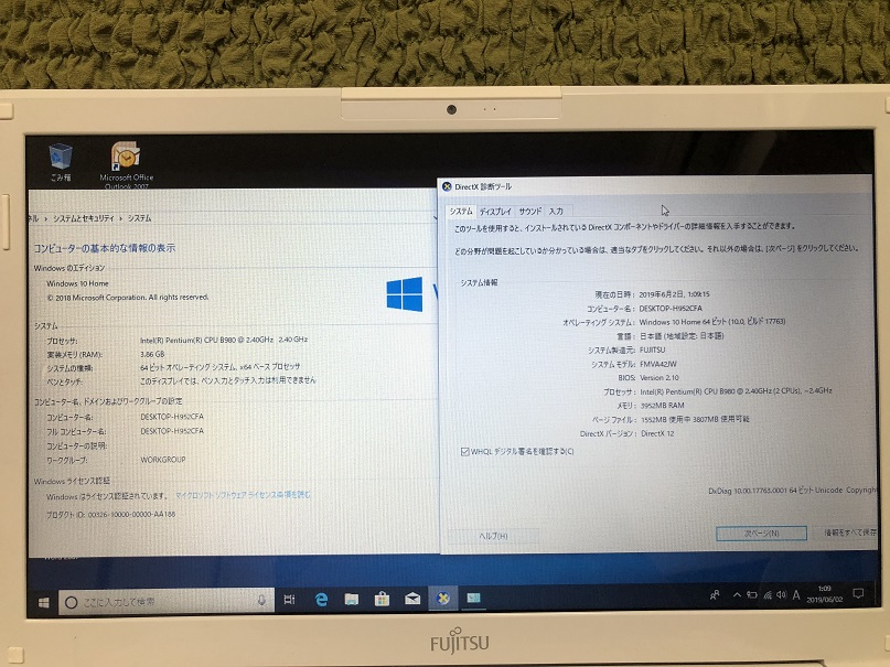 【中古PC情報】富士通 15インチ Win10 Pentium Dual-Core 2.4GHz メモリ4GB SSD